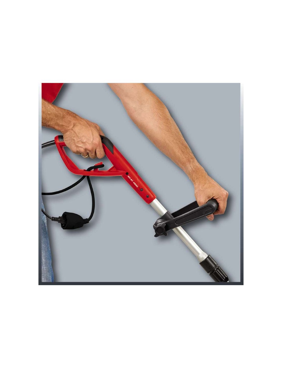 O aparador de relva elétrico GC-ET 4530 é um aparelho prático e muito potente, que permite aparar sem esforço áreas de jardim de difícil acesso, garantindo um jardim bem cuidado. Graças a uma cabeça motorizada rotativa a 180° e modulável em quatro posições, para um corte prático em superfícies verticais, o aparelho tem uma utilização versátil. O GC-ET 4530 está equipado com um motor elétrico robusto. A barra de condução em alumínio, continuamente telescópica e com pega adicional ajustável, permite uma condução cómoda com as duas mãos e uma adaptação precisa à estatura, a fim de garantir trabalhos não cansativos. A caixa e a pega adicional são compostas por plástico antichoque de elevada qualidade. O prático rolete de canto permite conduzir o aparador de forma cómoda e precisa ao longo de qualquer canto. O corte de fio duplo garante um corte limpo, sendo reajustado de forma cómoda por condução de fio totalmente automática. O prático Flowerguard garante uma distância de segurança em relação às flores, preservando assim a beleza do jardim. O cabo de alimentação do aparador de relva está protegido de desgaste e danos através de um dispositivo de alívio de tensão, enquanto a cobertura de proteção adicional protege o utilizador da projeção de pedras ou lascas de madeira. O prático kit de fornecimento do aparador de relva inclui três bobinas de fio.