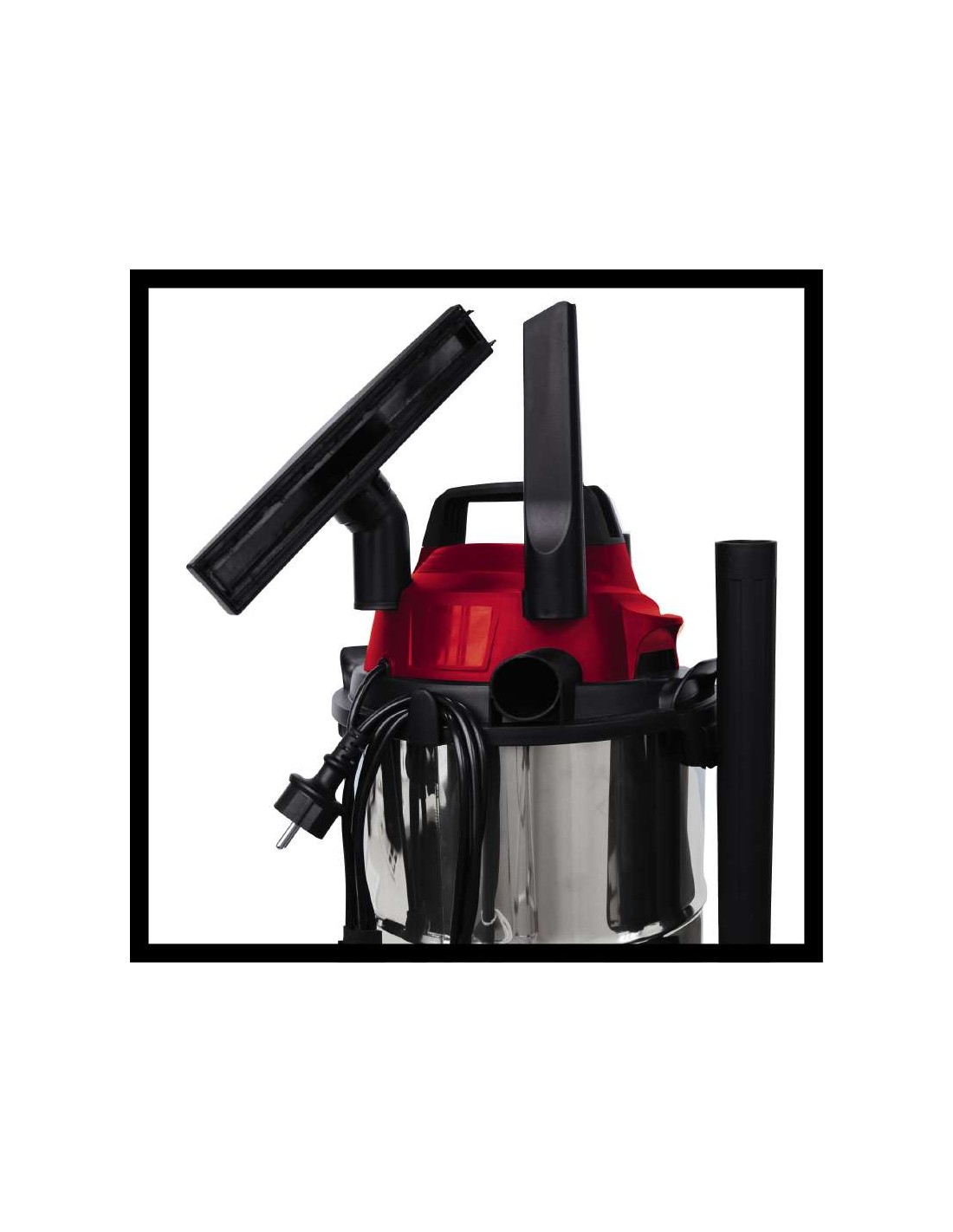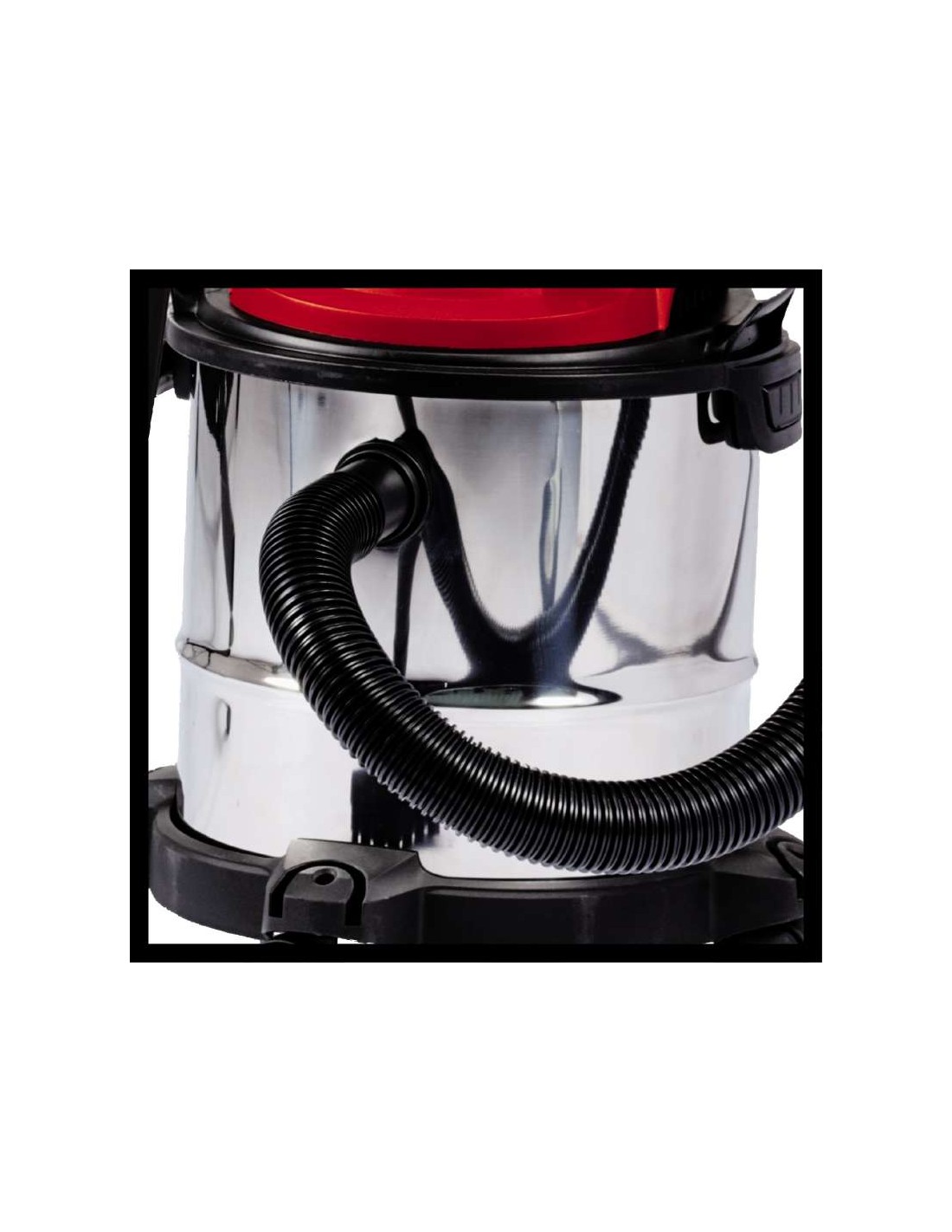 O aspirador de sólidos e líquidos TC-VC 1812 S é um aspirador flexível e potente, que facilita a limpeza de sólidos ou líquidos e é obrigatório numa casa. O depósito em aço inoxidável de 12 litros, fácil de limpar, aloja a sujidade grossa, fina, molhada ou seca, bem como os líquidos, sem deixar resíduos. Graças ao potente motor de 1250 W, consegue-se uma boa potência de aspiração, obtendo-se também sempre pressão suficiente para a sopragem adicional de pontos de difícil acesso, graças à prática função de sopragem. O saco robusto de recolha de sujidade retém de forma fiável até a poeira fina no sistema e torna a aspiração de pó um processo limpo. Em caso de aspiração de líquidos, um filtro de espuma adicional protege o motor da sujidade. O TC-VC 1812 S está equipado com um sistema de mangueira de 36 mm, com uma pequena ligação, sendo composto por uma mangueira de aspiração, 3 tubos de extensão e uma peça de adaptação. O grande bocal de aspiração, fornecido juntamente com um acessório combinado, deve ser usado da mesma forma em alcatifas e pavimentos lisos; com o bocal para juntas é possível também limpar minuciosamente esquinas e ângulos estreitos. O prático suporte para acessórios permite guardar todas as peças de forma rápida e adequada diretamente no aparelho, sendo que o cabo elétrico enrolado pode ser fixado de forma segura no suporte de cabos depois de realizados os trabalhos. A pega de transporte estável e as quatro rodas orientáveis móveis garantem mobilidade máxima.
