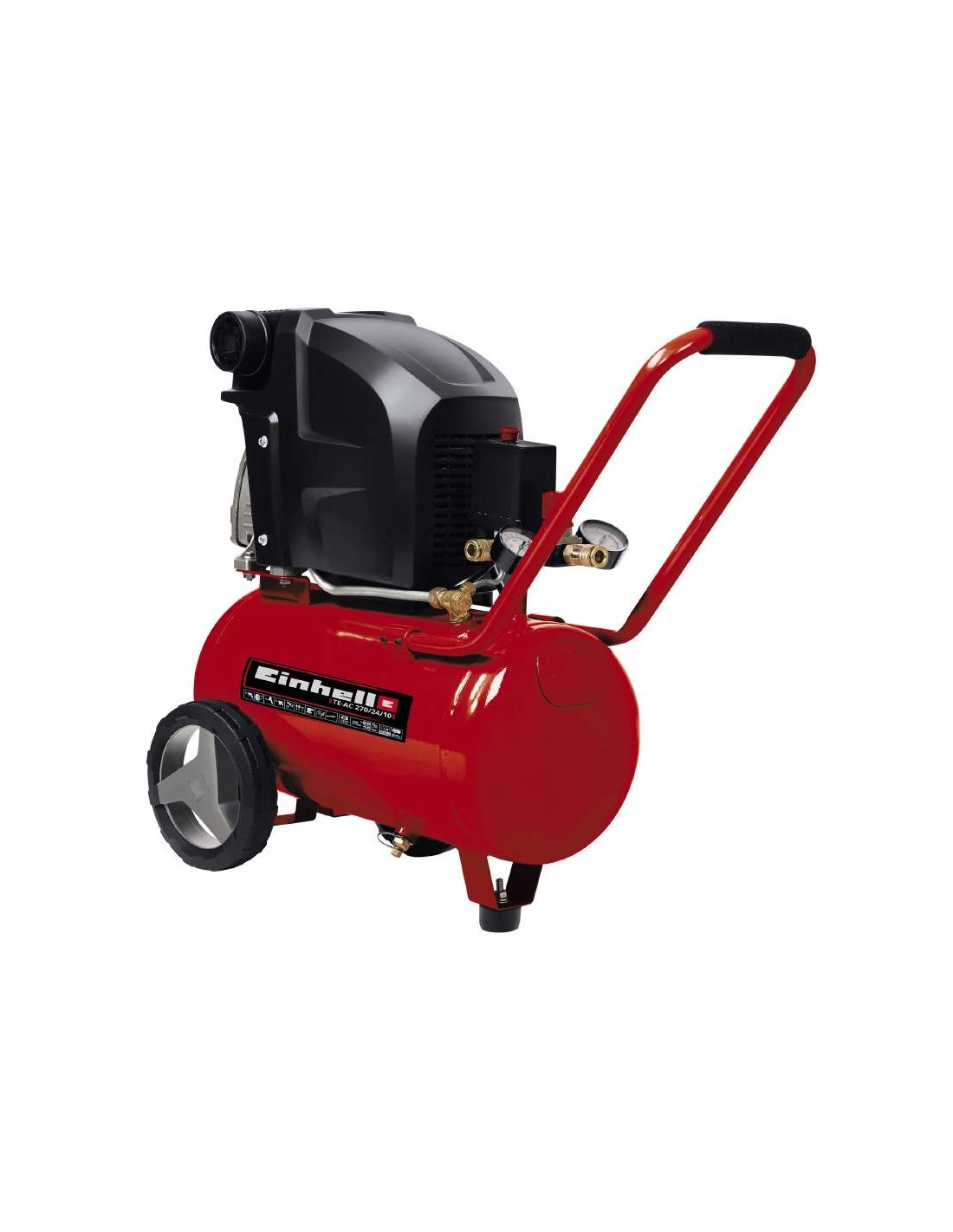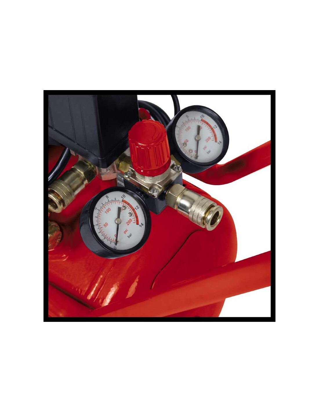 O compressor TE-AC 270/24/10 da Einhell é um aparelho potente, robusto e com longa vida útil, que permite satisfazer elevadas exigências. Os componentes e a lubrificação por óleo, de elevada qualidade, permitem uma vida útil muito longa. O nível de óleo pode ser controlado de forma prática através de uma janela de inspeção. O redutor de pressão permite ajustar a pressão de trabalho até 10 bar para muitas aplicações. Com um tanque com 24 litros de volume, o compressor oferece reservas de ar comprimido suficientes para muitas utilizações. A pressão de trabalho regulada do TE-AC 270/24/10 pode ser consultada de forma muito prática no grande manómetro, podendo ser reduzida através de um acoplamento rápido. Para os trabalhos com pressão de tanque não regulada, existe também um manómetro e um acoplamento rápido. O prático tampão de descarga para o condensado permite uma manutenção cómoda. A válvula de retorno e a válvula de segurança garantem uma operação segura do TE-AC 270/24/10, enquanto as rodas grandes e o estribo de retenção garantem o transporte fácil. O tanque com longa vida útil, concebido de forma robusta, tem garantia de 10 anos contra a ferrugem.