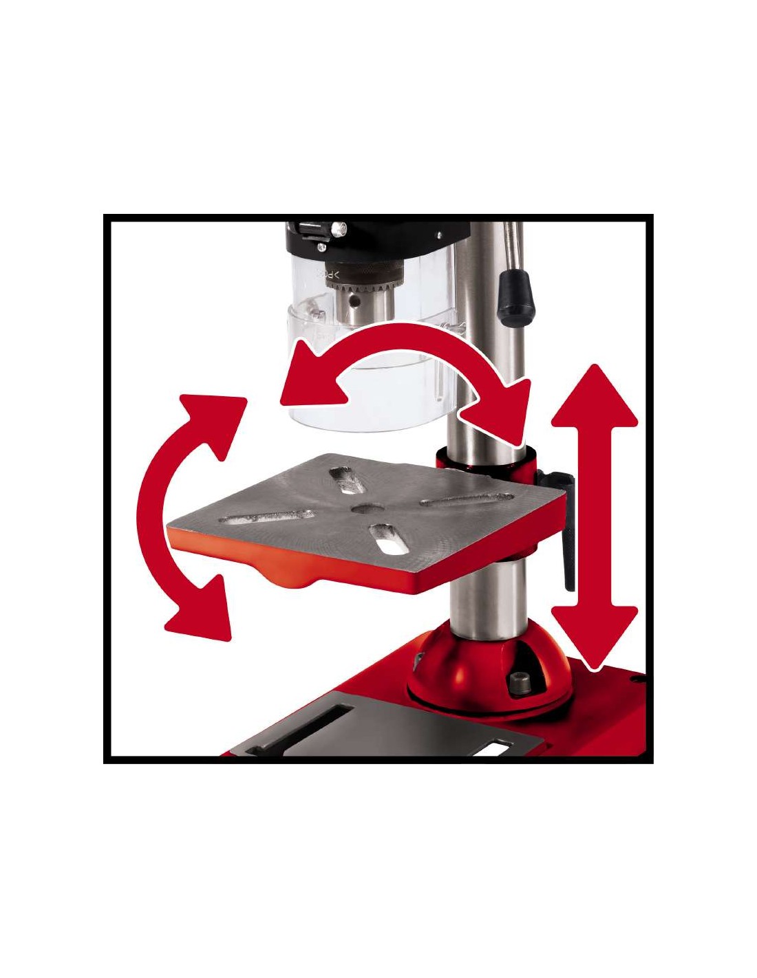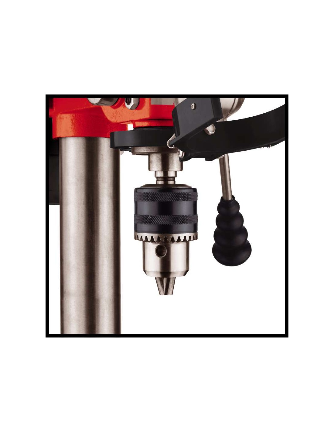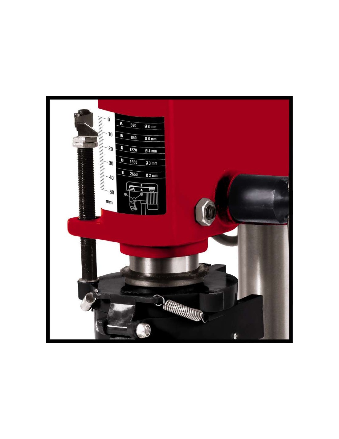 O berbequim de coluna Einhell TC-BD 350 é um aparelho potente e versátil para a oficina e em casa. Os furos precisos vão deixar de ser um problema: a alavanca de perfuração com três braços garante sempre o doseamento certo da pressão, podendo o batente de profundidade ser ajustado para a realização de furos precisos. A construção estável da base garante um apoio seguro do aparelho. O berbequim de coluna Einhell TC-BD 350 trabalha com uns potentes 350 W e uma rotação do fuso de 580 a 2650 rotações por minuto, podendo esta ser ajustada em cinco níveis. A mesa de perfuração pode ser inclinada e rodada até 45°, de ambos os lados, adaptando-se a uma diversidade de perfurações. A altura da mesa de perfuração pode ser ajustada de forma contínua e sem ferramenta. O suporte do mandril de brocas B16 permite que o berbequim de coluna perfure o material pretendido com diâmetros de brocas de 1,5 a 13 milímetros, até uma profundidade de perfuração de 50 milímetros. Uma proteção rebatível contra limalhas garante uma perfuração protegida. O interruptor on/off com disparador de tensão nula serve de proteção do rearranque. O fuso de perfuração com rolamentos de esferas foi concebido para garantir um funcionamento duradouro.