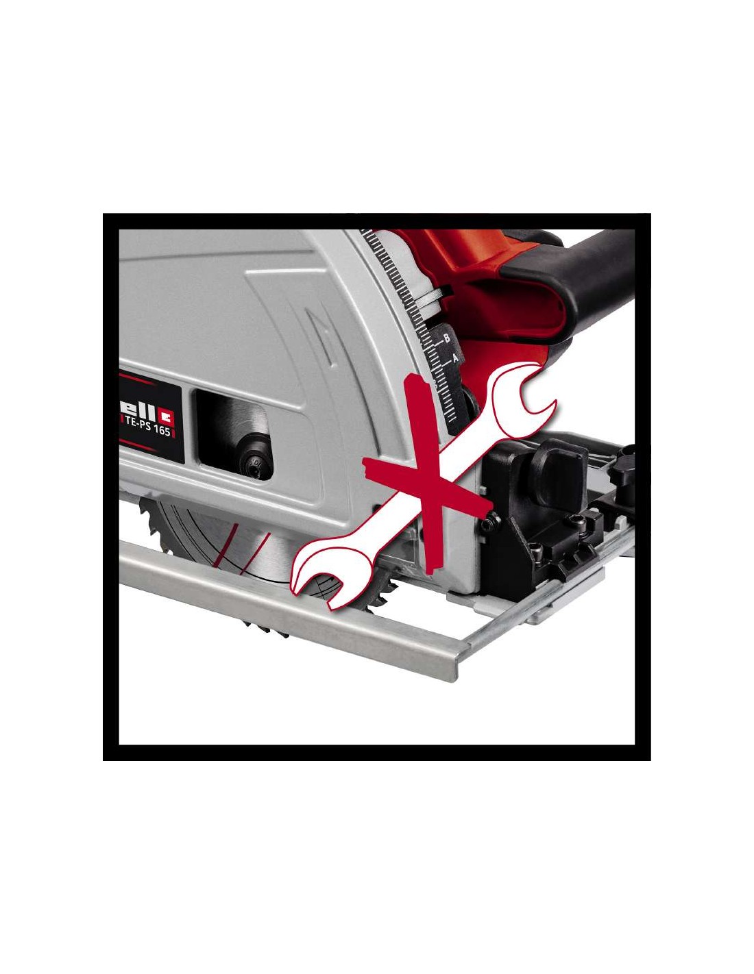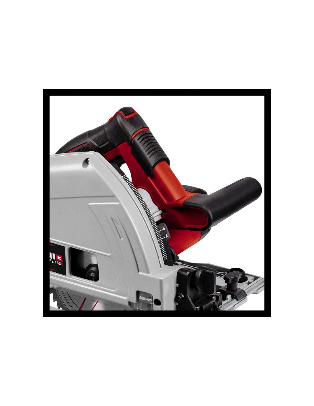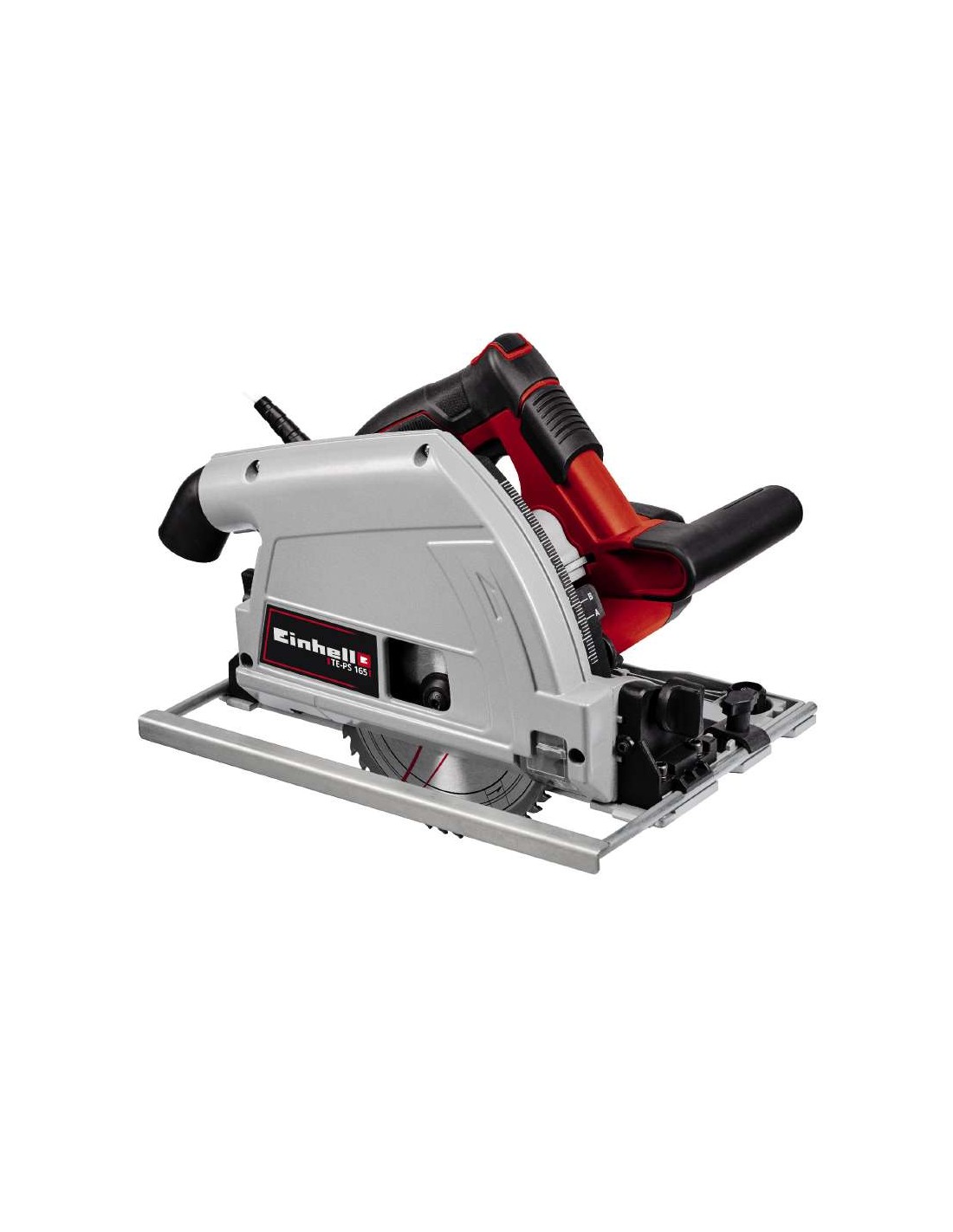 A serra de imersão TE-PS 165 Einhell é um aparelho versátil e potente, caso seja necessário realizar cortes precisos nos mais variados materiais. Seja em madeira, painéis revestidos ou plásticos, a lâmina da serra, em metal duro, de elevada qualidade e com uma potência máxima de 1200 W, avança de forma potente pelos materiais, até uma profundidade de corte de 56 mm (com 90° sem calha). Mesmo com corte oblíquo até 45°, as profundidades até 42 mm (sem calha) não representam qualquer obstáculo. Mesmo junto aos bordos, estão garantidos cortes limpos. A profundidade de corte e o ângulo de inclinação podem ser ajustados sem ferramentas e de forma simples. O bloqueio da lâmina da serra permite uma substituição simples da lâmina da serra. A janela de visualização garante uma maior visibilidade da área de corte. O comprimento do cabo garante um raio de ação especialmente grande, até quatro metros. Os resultados do trabalho em linha reta são permitidos pelo batente paralelo. O adaptador do aspirador de poeiras permite manter o local de trabalho limpo. O arco da pega grande foi concebido para a realização de um trabalho sem esforço com a serra de imersão Einhell. O sistema de calhas de condução disponível em separado garante uma precisão ainda maior. Os suportes de plástico especiais estão pensados para um ajuste de precisão da calha de condução.